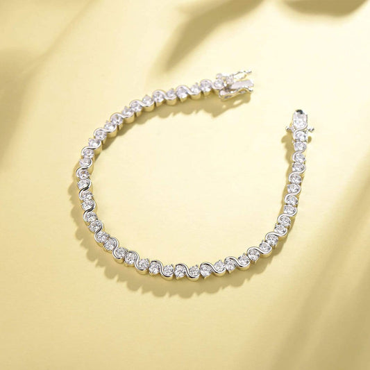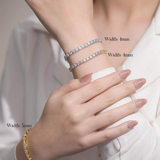 スターリングシルバー 4mm イエローゴールド モアッサナイト テニスブレスレット