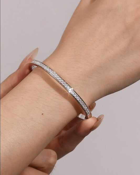 スターリングシルバー モアッサナイト バングル クラシック テニスブレスレット 3mm 7.1インチ