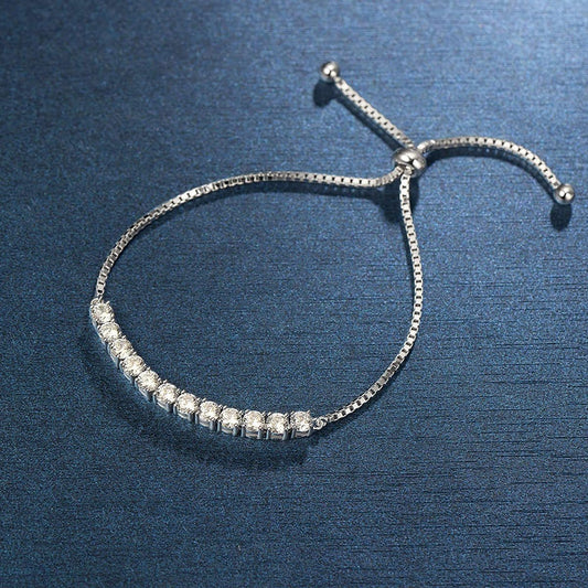 4mm スターリングシルバー ラウンド モアッサナイト 調節可能 ボロ テニス ブレスレット