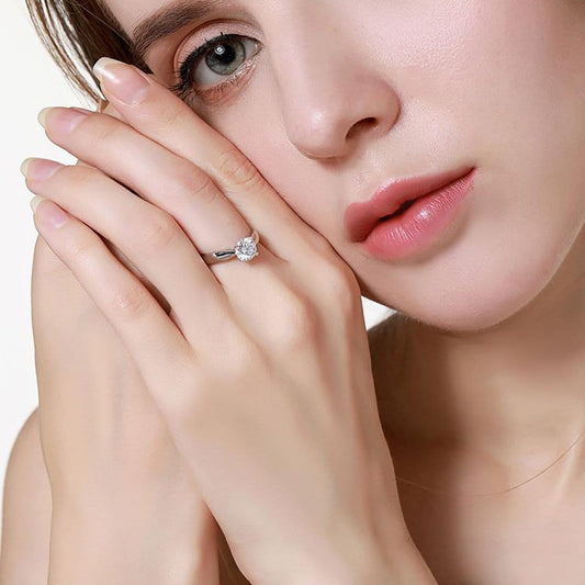 スターリングシルバー クラシック 1 カラット モアッサナイト ソリティア エンゲージリング