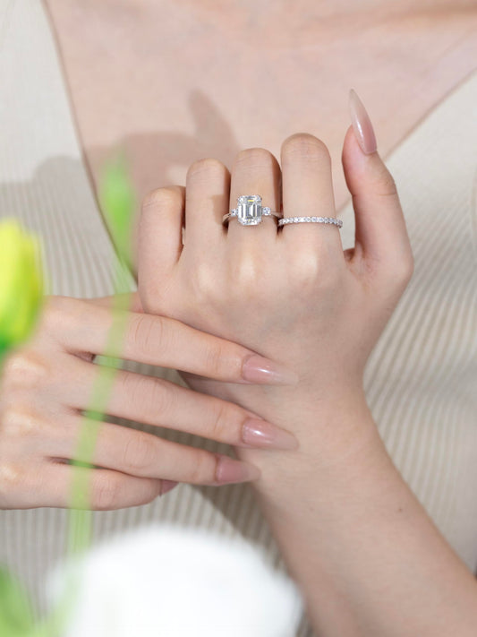 3mm Wdith Half Eternity Sterling Silver Moissanite Wedding Band Ring