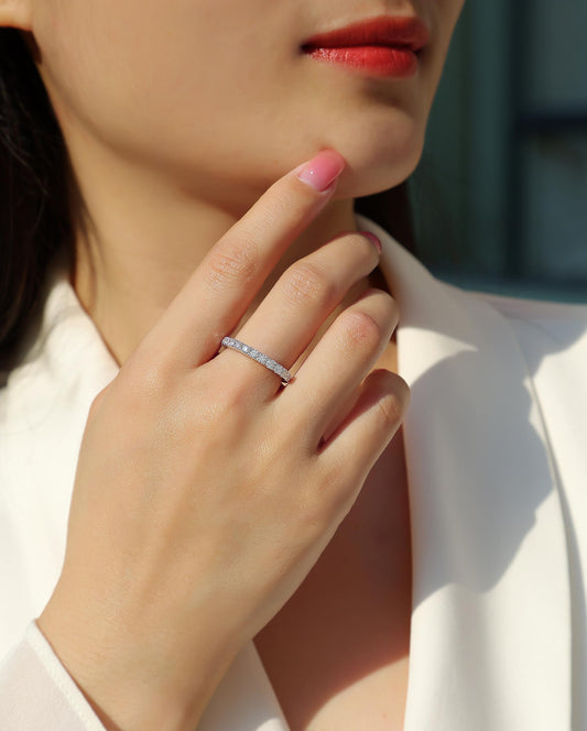 2mm スターリングシルバー フルエタニティ スタッカブル モアッサナイト 結婚指輪